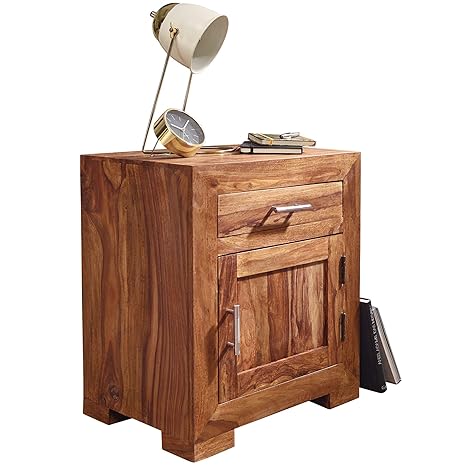 Finebuy Nachttisch Massivholz Sheesham Design Nachtkommode 60cm